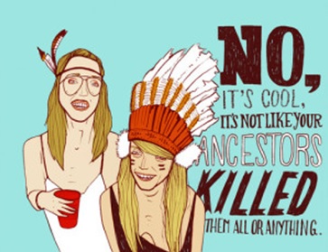 Ι’m a Native American, and I’m fed up with the appropriation of my culture by those desperate to be trendy, hip, ironic etc. Being a Native comes with a history of decidedly un-trendy events, such as the cultural genocide of an entire continent, residential schools, racism, stolen generations, and the eradication of entire tribes of people and their cultural traditions.