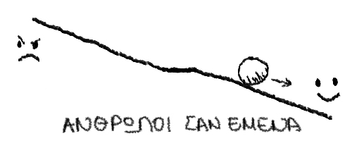 Η μπάλα στη μέση είναι κάποι@ που μόλις γνωρίσαμε. Δεν τ@ν ξέρουμε, δεν έχουμε ακούσει ποτέ τίποτα γι’αυτ@. Αν ακούσουμε κάτι καλό για αυτό το άτομο, μπορεί να μετακινηθεί λίγο προς τα δεξιά: