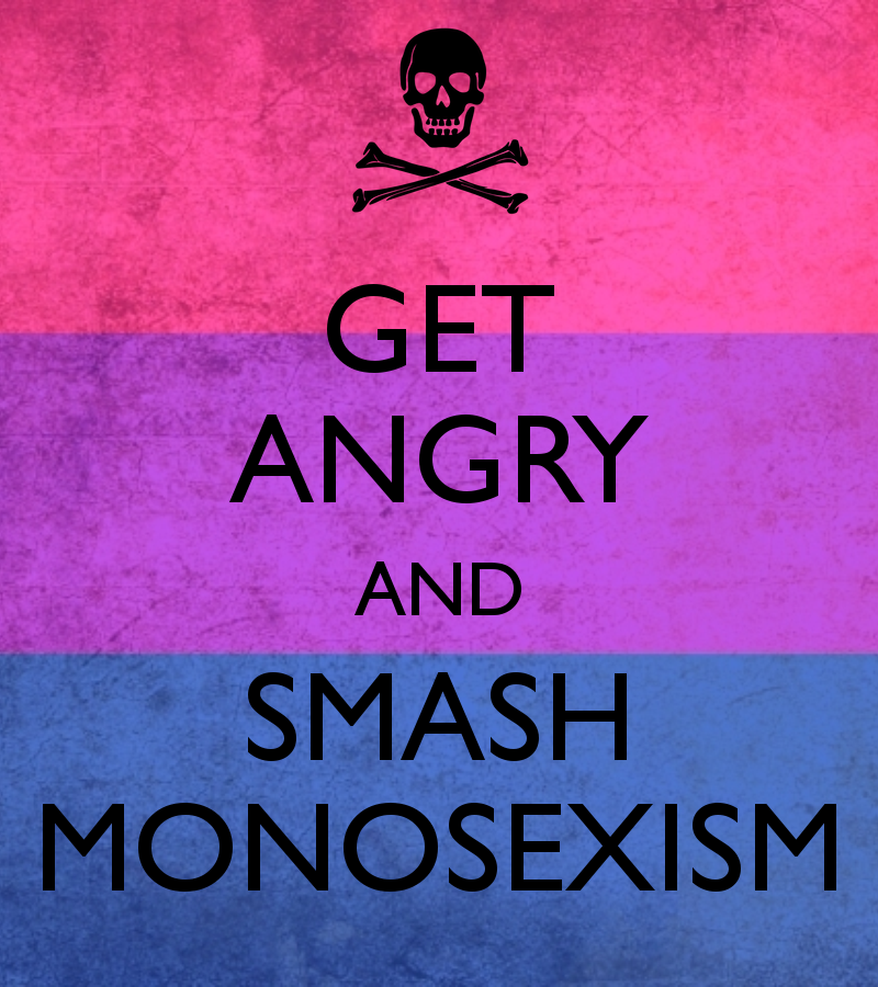Θέλω να σημειώσω πως ο μονοσεξισμός είναι μια δομή που πρωτίστως προέρχεται από την ετεροκανονικότητα και την πατριαρχία – κατά 99,99999999% προέρχεται από την ετεροκανονική κουλτούρα. Οπότε, για εμένα, ο μονοσεξισμός είναι ένας όρος που μας επιτρέπει να δούμε όλους τους τρόπους που η πιο ευρεία κουλτούρα δημιουργεί καταπίεση ενάντια στα αμφισεξουαλικά άτομα. Επιπρόσθετα, μας επιτρέπει να εξετάζουμε τον μονοσεξισμό ως μια δομή που επηρεάζει όλ@ς και όχι μόνο τα αμφί* άτομα – παραδείγματος χάριν, περιορίζοντας τις επιλογές των ανθρώπων.